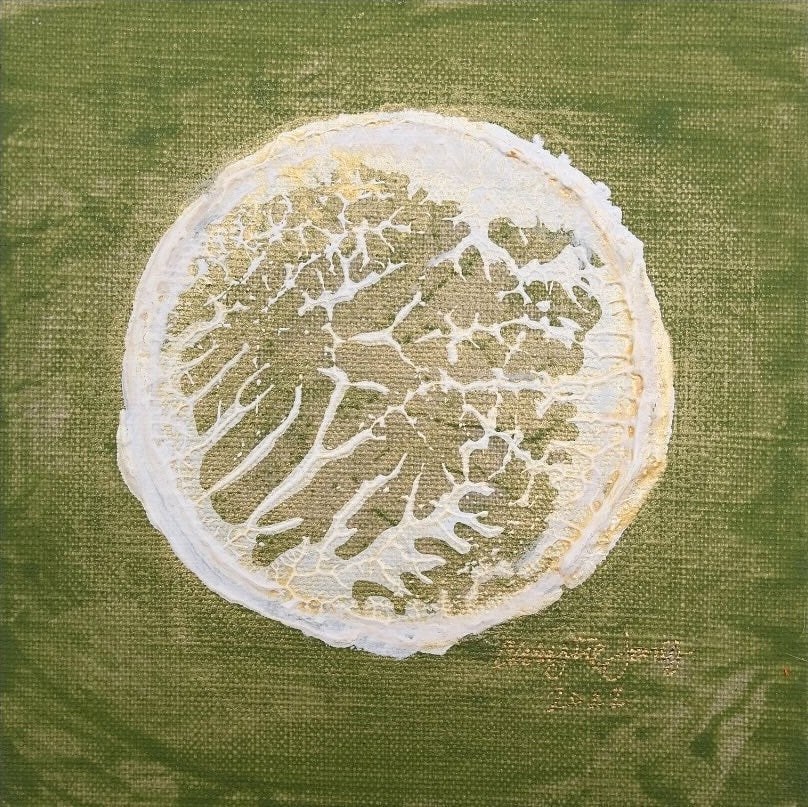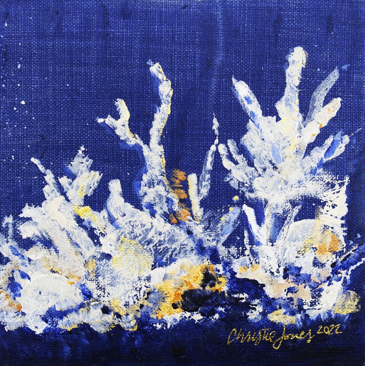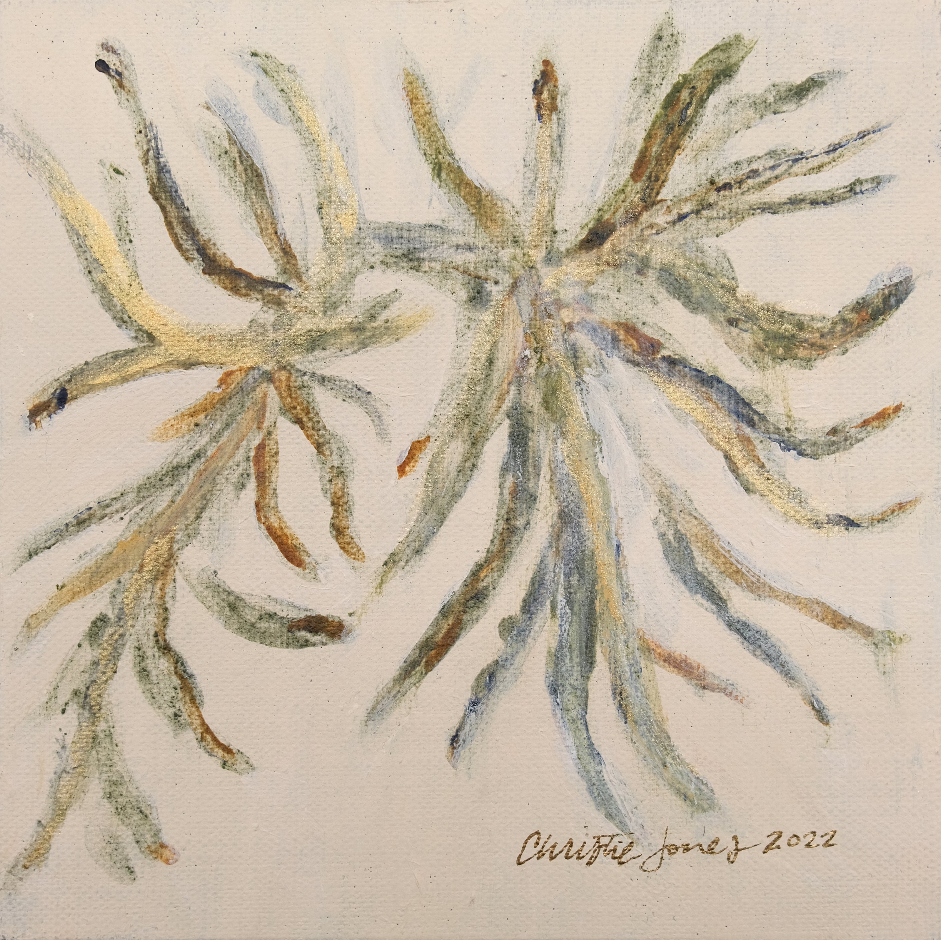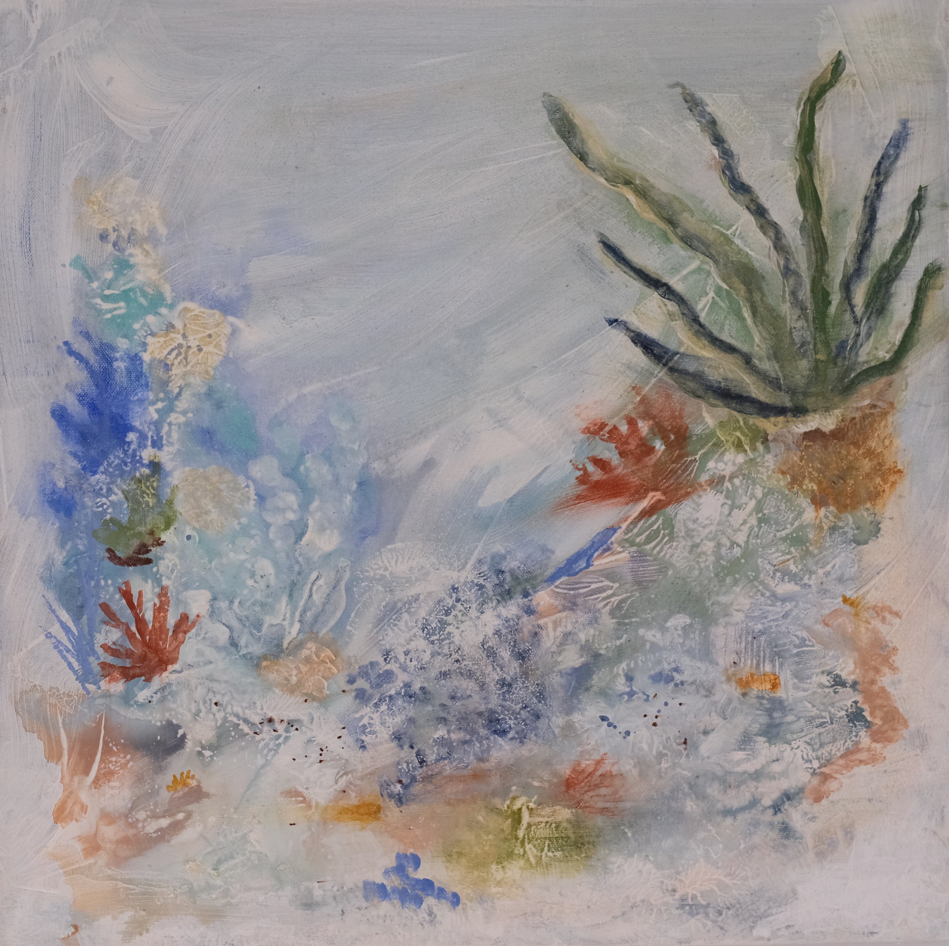 "I weave together the intricate threads of climate change, shellfish & kelp farming, along with the haunting reality of coral reef bleaching. I aim to spotlight the fragility of our ecosystems and the imperative for collective action. Driven by a commitment to sustainability, I craft my own non-toxic paints using earth and mineral pigments. The resulting color palette, serves not only to distinguish my work, but also to foster a cohesive visual experience for those who collect multiple pieces. Amidst the complex layers of my creations lies a call to action, an abstract plea for collective mindfulness towards our planet's well-being."