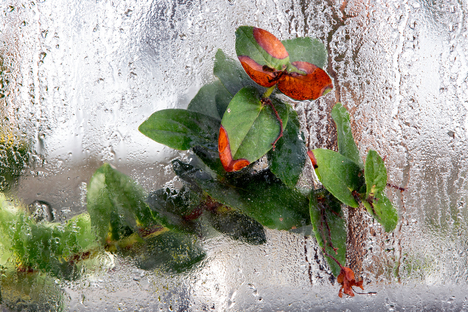 Equilibrium is a two-person exhibition featuring photographs by Scott Farrell and ceramics by Lori Rosen that each focus on the interactions and relationships of a contained and constructed environment in dynamic equilibrium. In Farrell’s work, the large glass windows of a greenhouse contain a lush indoor environment. These windows serve as a barrier, containing life and maintaining balances in temperature, humidity, and air quality. Farrell utilizes our separation from this balanced environment as a pre-existing “filter” – one that is whitewashed, streaked with condensation, or reflective – to create impressionist and abstract compositions. Balance is also central to Lori Rosen’s series Stepping Stones. Each reminiscent of actual stones glistening after a rain shower, her sculptures are comprised of delicately stacked harmonious compositions that appear to defy gravity. Rosen’s creative process plays with contrasting textures, luminous shapes, and bold forms, all emerging from her practice of yoga and meditation. Chance encounters unite both artists, as does the serendipity of the creative process. Rosen and Farrell seek these encounters as part of a lifelong search for balance both within themselves and the larger world around us.