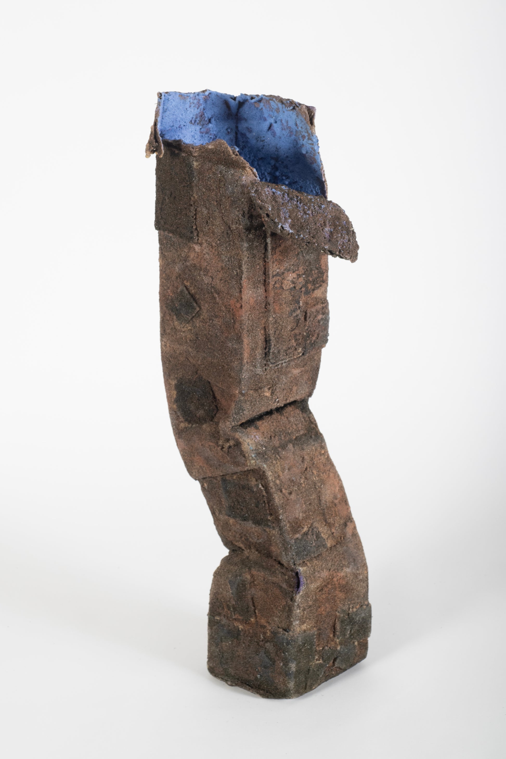 natural and colored sand, debris, foam, polymer glues on cardboard box