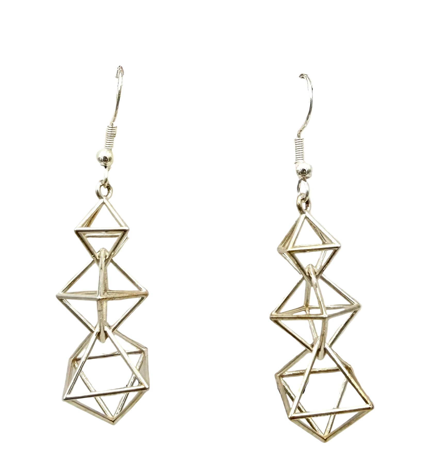 Silver Dangling Octahedra Earrings