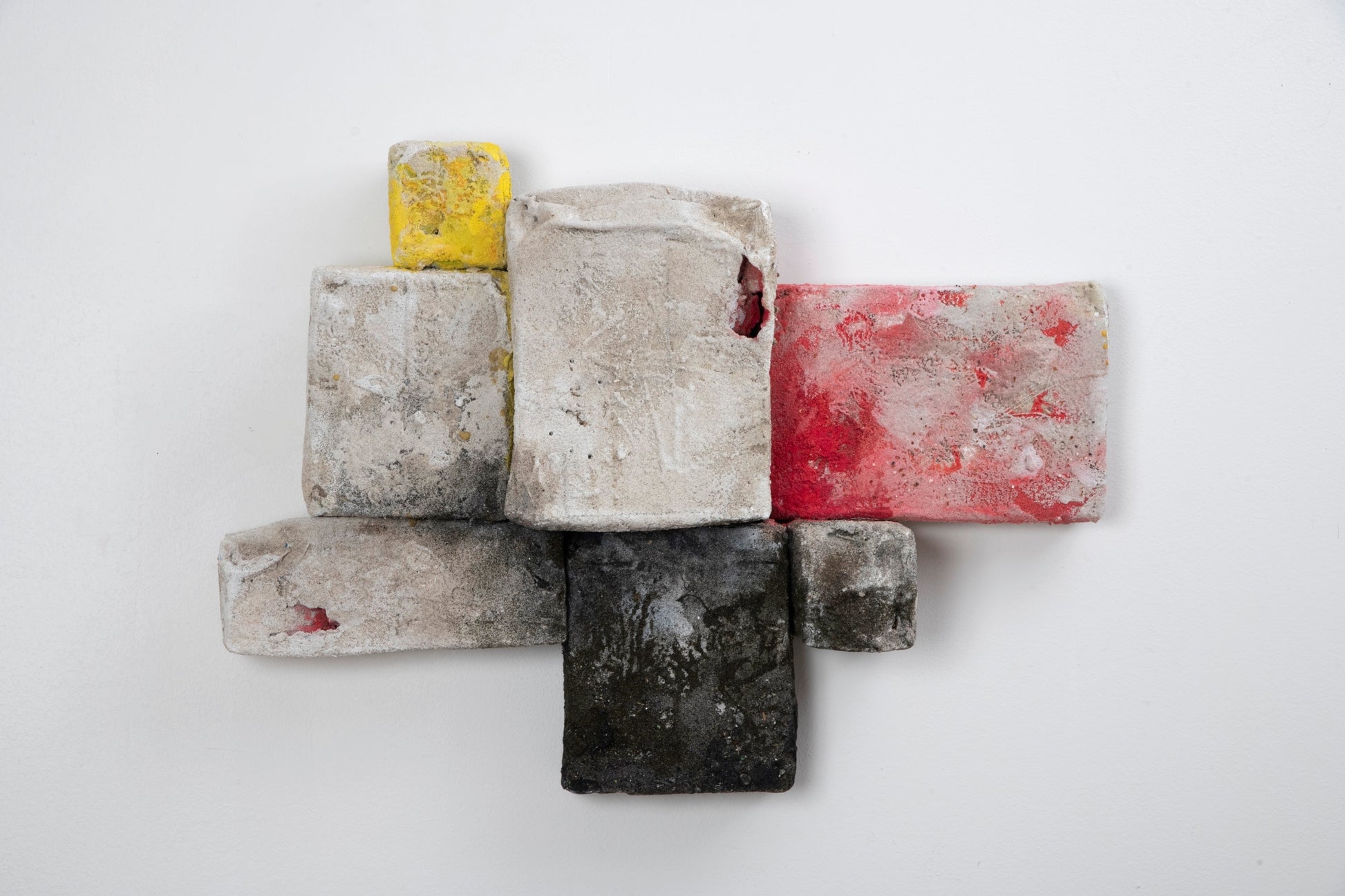 natural and colored sand, foam, debris, polymer glues on cardboard boxes