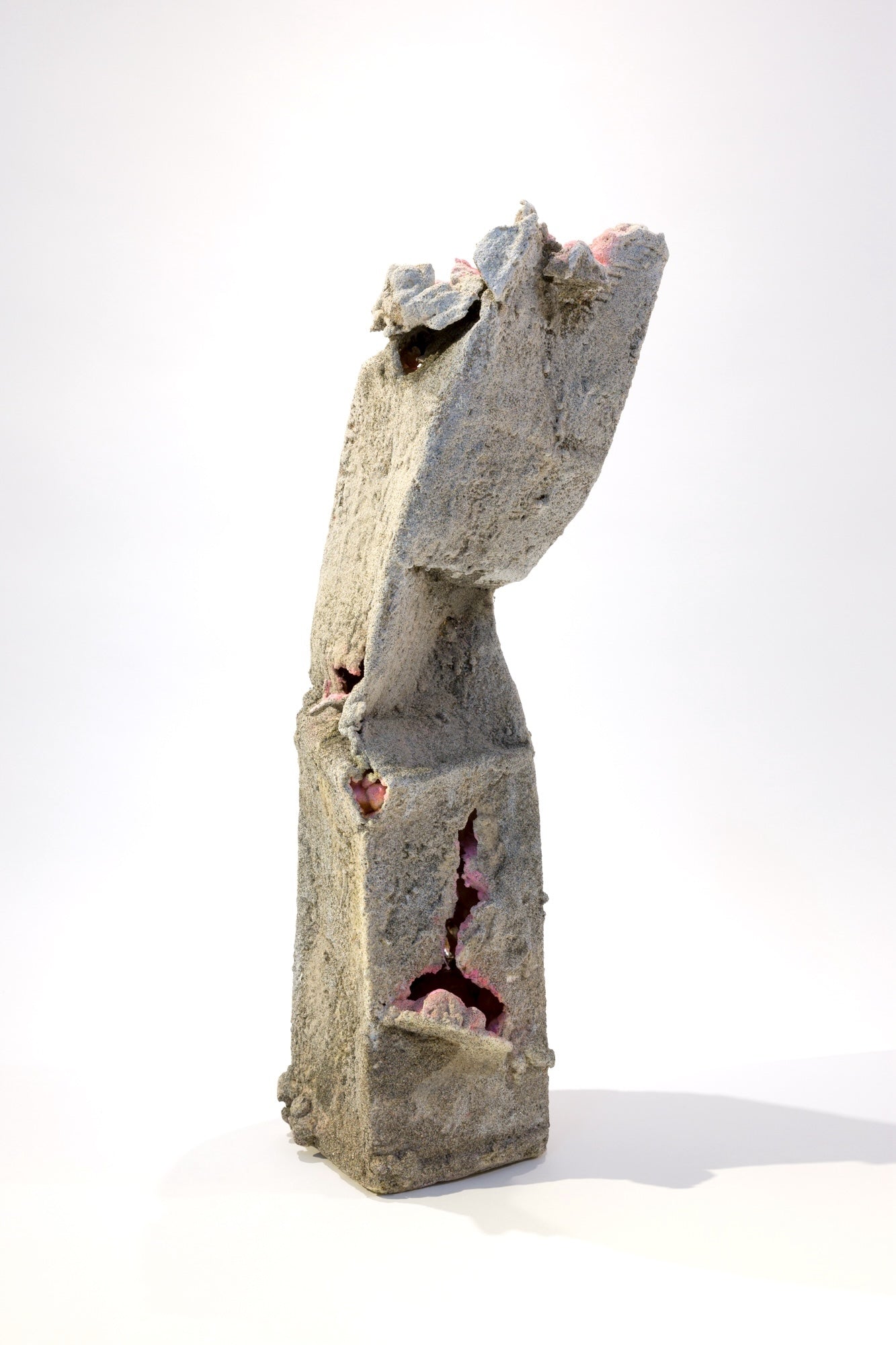 natural and colored sand, foam, debris, polymer glues on cardboard box