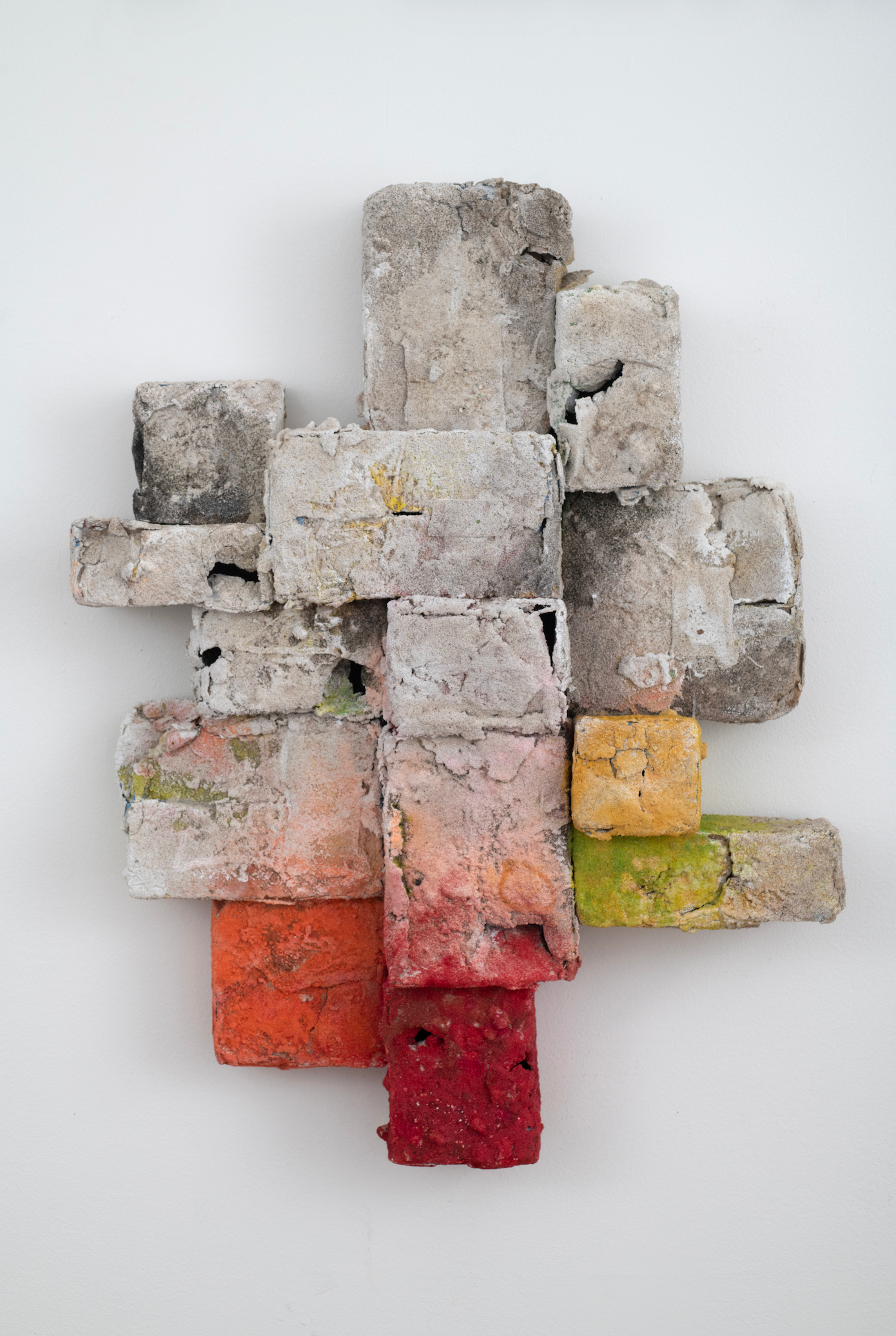 natural and colored sand, foam, debris, polymer glues on cardboard boxes