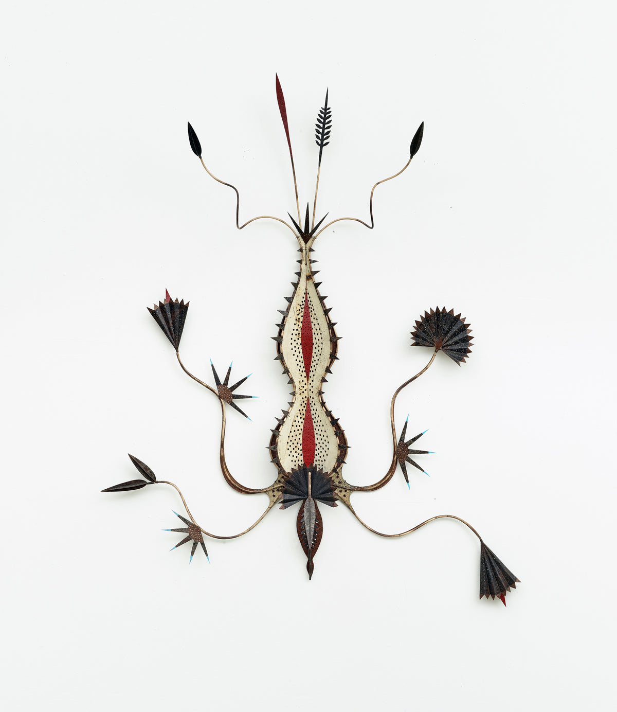 sheet metal, wire, collage, paint