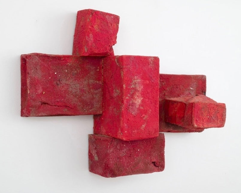 natural and colored sand, debris, polymer glues on cardboard boxes