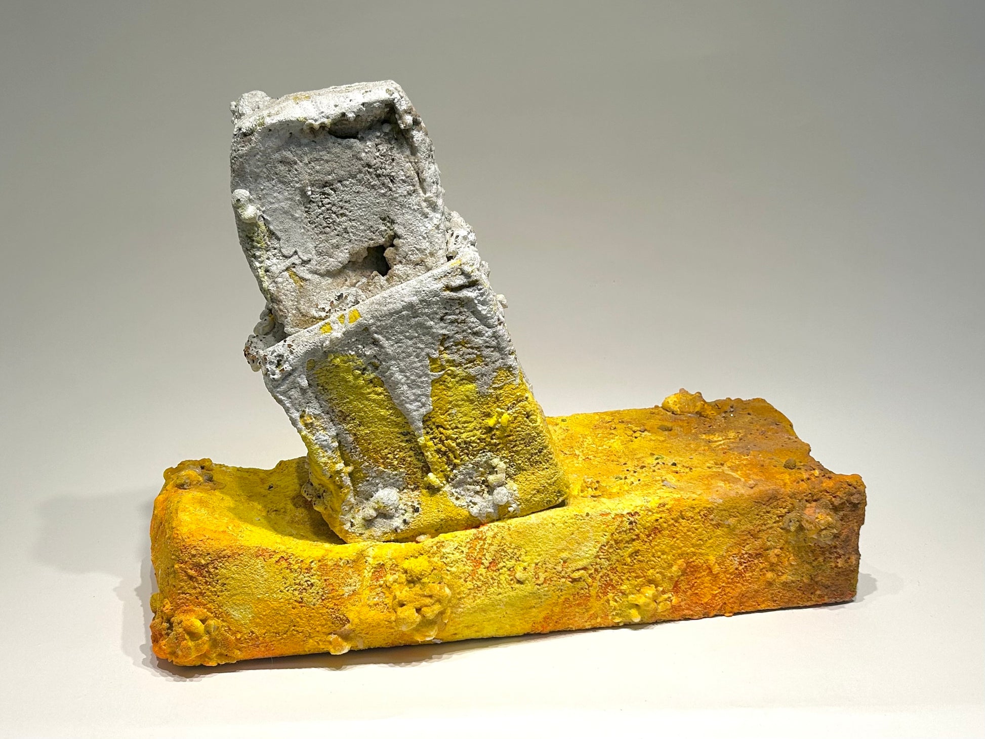 natural and colored sand, foam, debris, polymer glues on cardboard boxes
