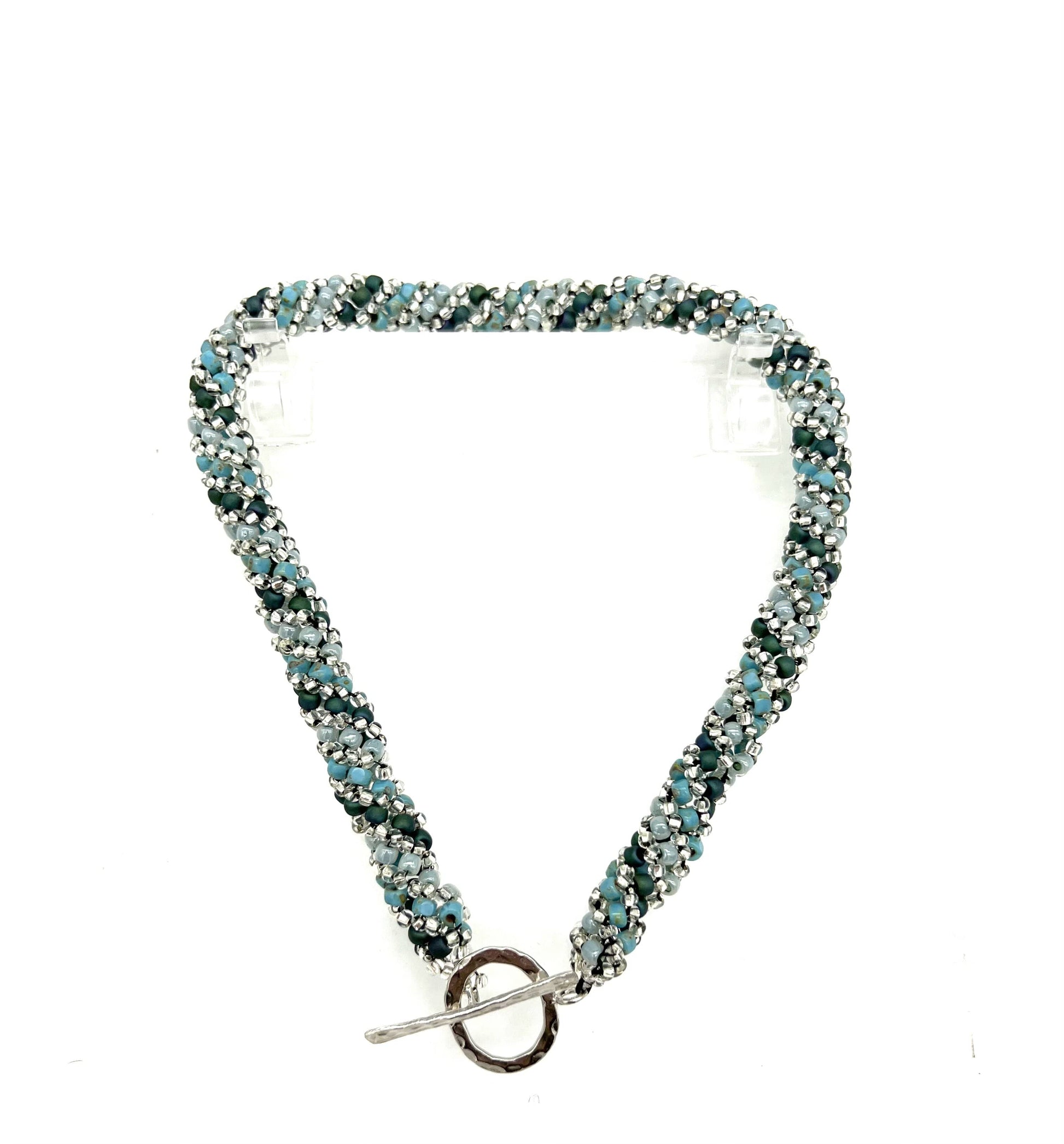Silver, Blue and Turquoise Beaded Kumohimo Choker Necklace