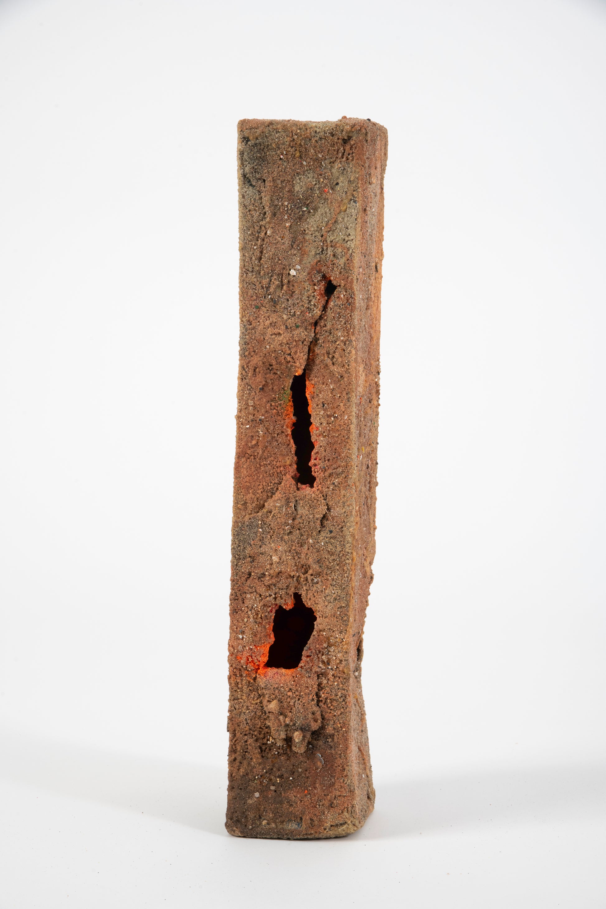 natural and colored sand, foam, debris, polymer glues on cardboard box